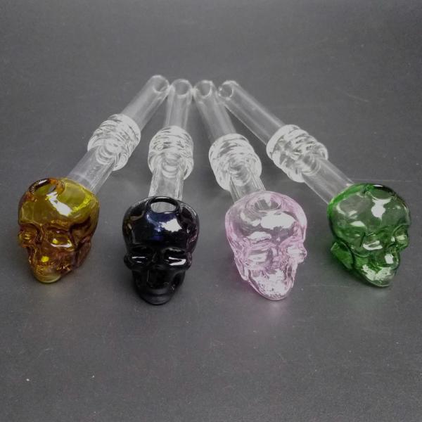Long Colored Glass Burner Skull Smoking Handle Pipes High Quality Oil Burning Pipe